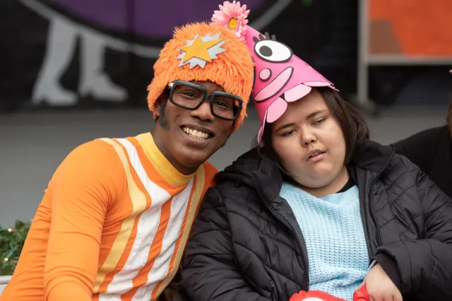 His iconic bright orange outfit, glasses, and cheerful personality make him instantly recognizable.